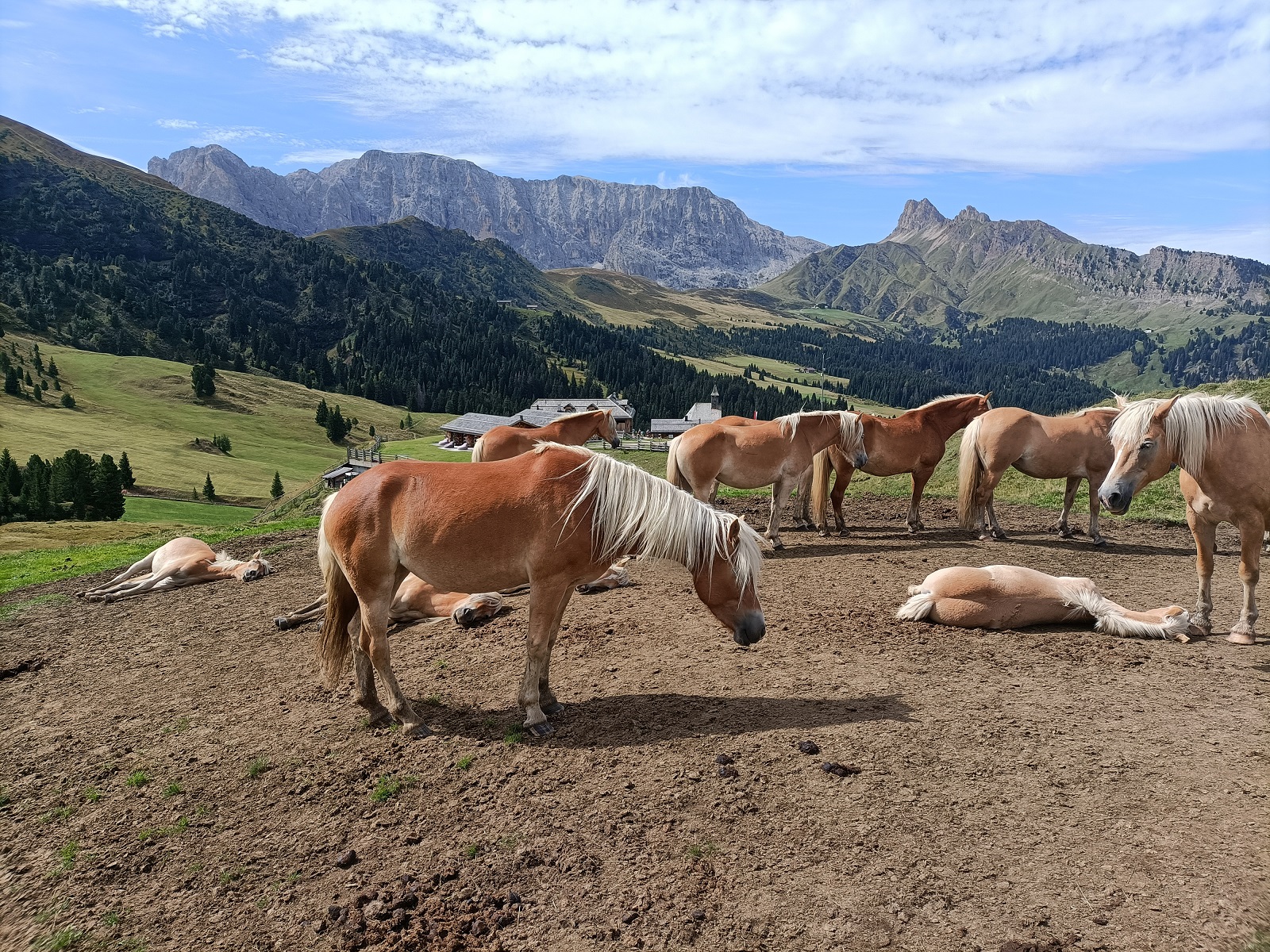 Vicino al rifugio Zallinger alcuni cavalli si godono la giornata