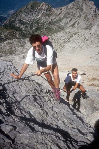 Poco prima della vetta, in un facile passaggio protetto da catena |