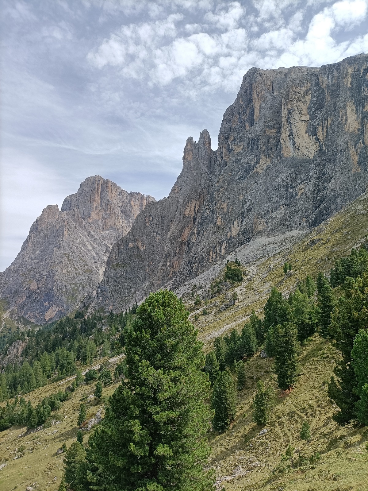Vista verso le guglie e le pareti fra Sassopiatto e Sassolungo |