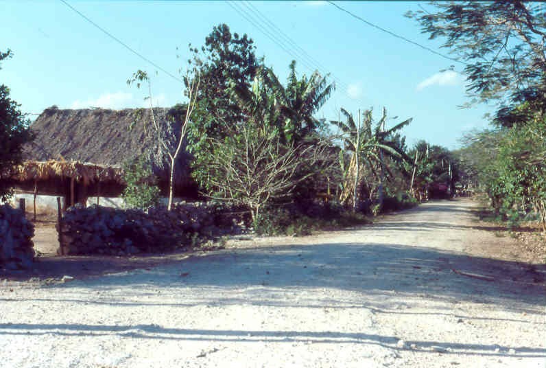 La sera rientriamo verso l' altipiano e ci godiamo una bella cena con cucina a vista in un ristorante a S. Cristobal; l' indomani cominciamo il lungo viaggio di rientro. Il ritorno verso lo Yucatan: Dal Chiapas verso lo Yucatan ripercorriamo grosso modo lo stesso tragitto dell' andata, fermandoci ogni tanto in qualche paesino lungo la strada ed evitando le grosse citta'. La distribuzione nelle macchine ci vede alternati alla guida, in genere con un equipaggio maschile e uno femminile, con il prode Massimo alla guida, a sollazzarsi tra le donne (in realta' il tapino e' una povera vittima e alla fine del tragitto ne uscira' malconcio). Giunti in prossimita' della punta dello Yucatan notiamo sulla cartina che, mentre la strada principale ci farebbe ripassare per Merida, esiste una strada alternativa, che taglia orizzontalmente la pianura e porta direttamente sulla costa, fra Tulum e Playa del Carmen. Dato che la strada e' segnata sulla cartina generale del Centro America, ipotizziamo che sia abbastanza importante, e decidiamo di seguirla con l' intento di risparmiare un po' di chilometri e di visitare anche le zone rurali e meno battute dal turismo dello Yucatan interno. |